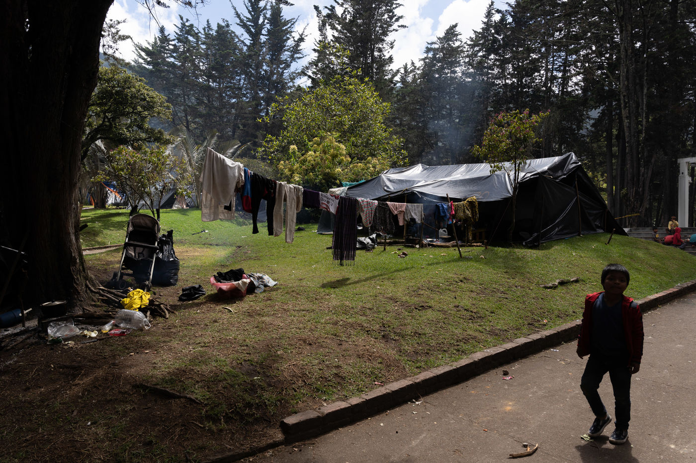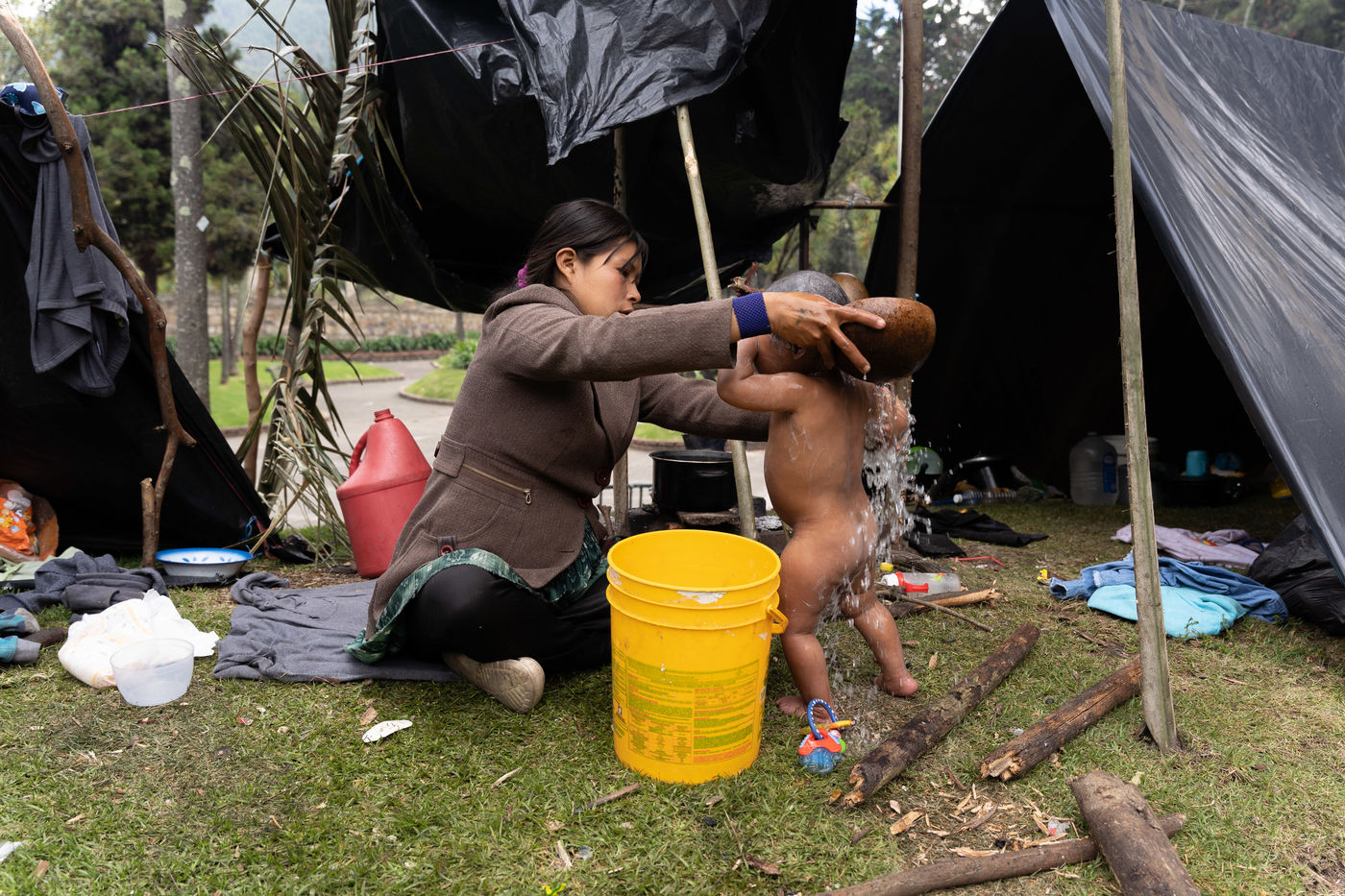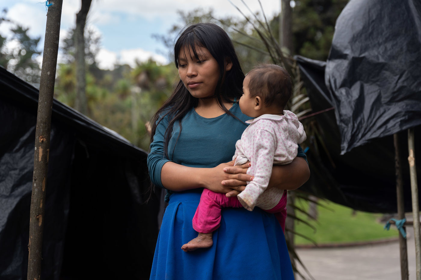 Displaced indigenous groups occupy National Park in Bogota, Colombia.