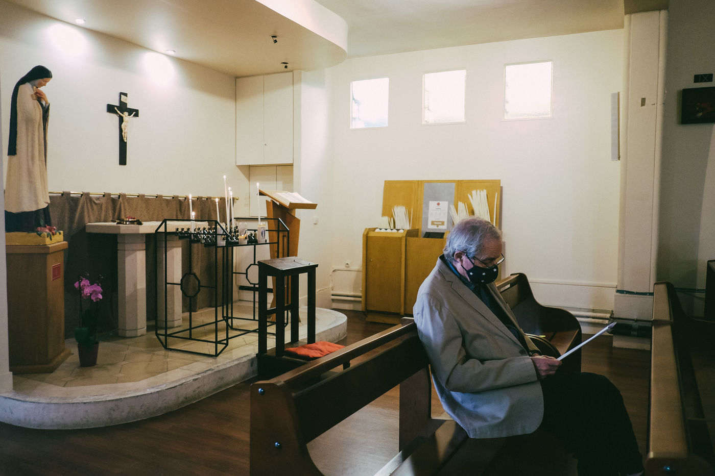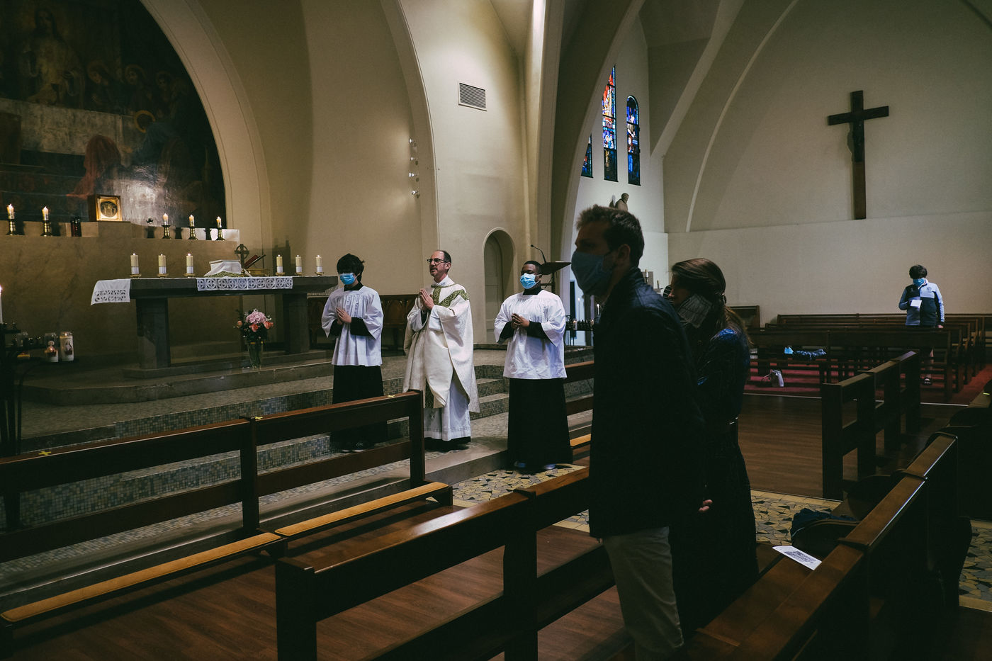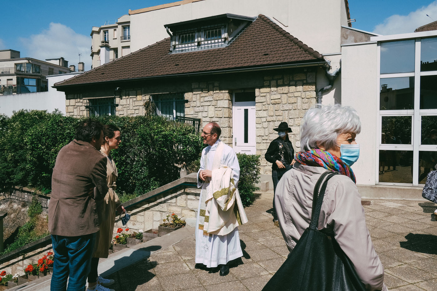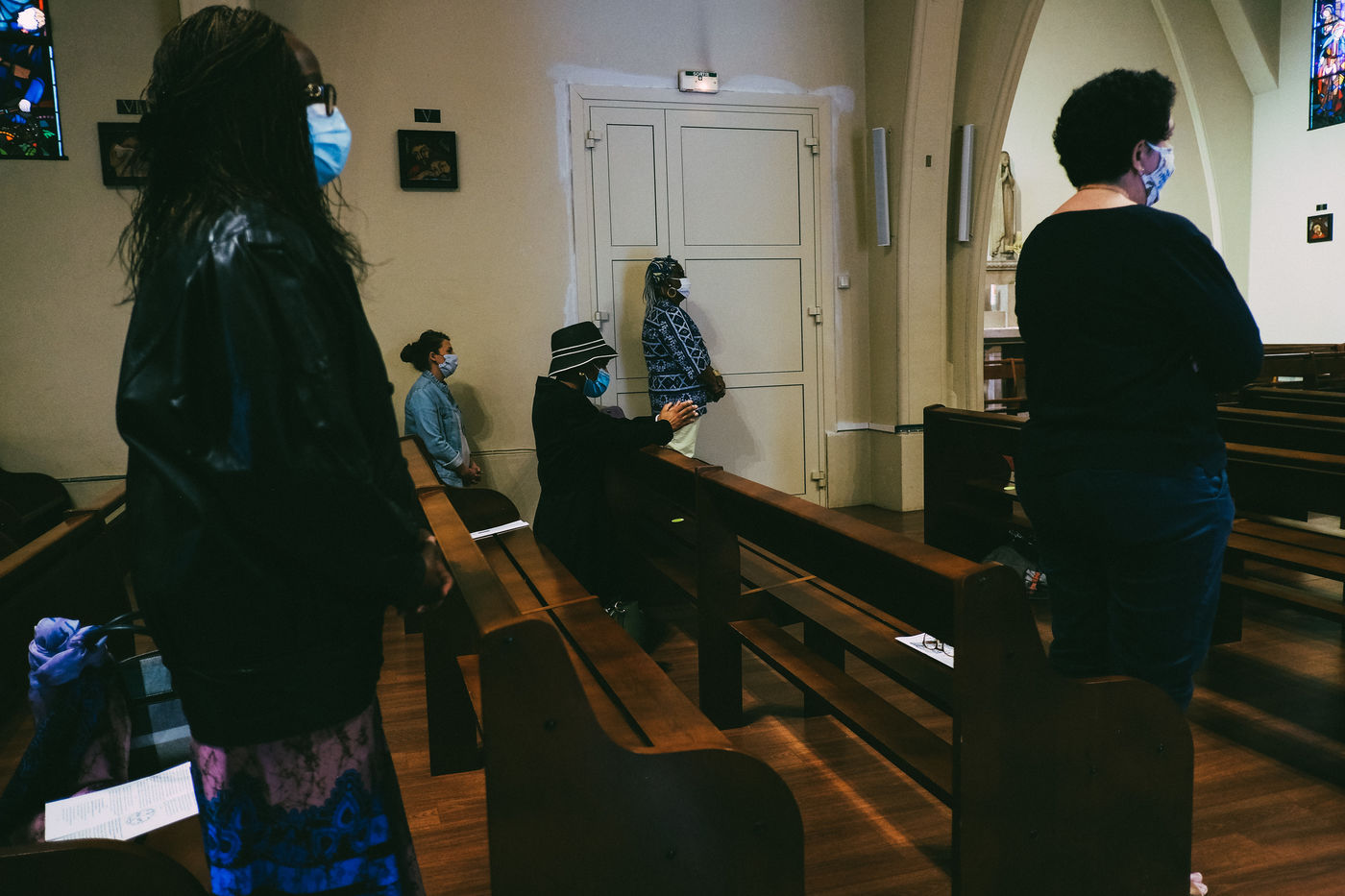 First mass after the deconfinement, resumption of religious celebrations by the Catholic faithful at parish « Coeur Eucharistique de Jésus ». Paris France, May 24, 2020.