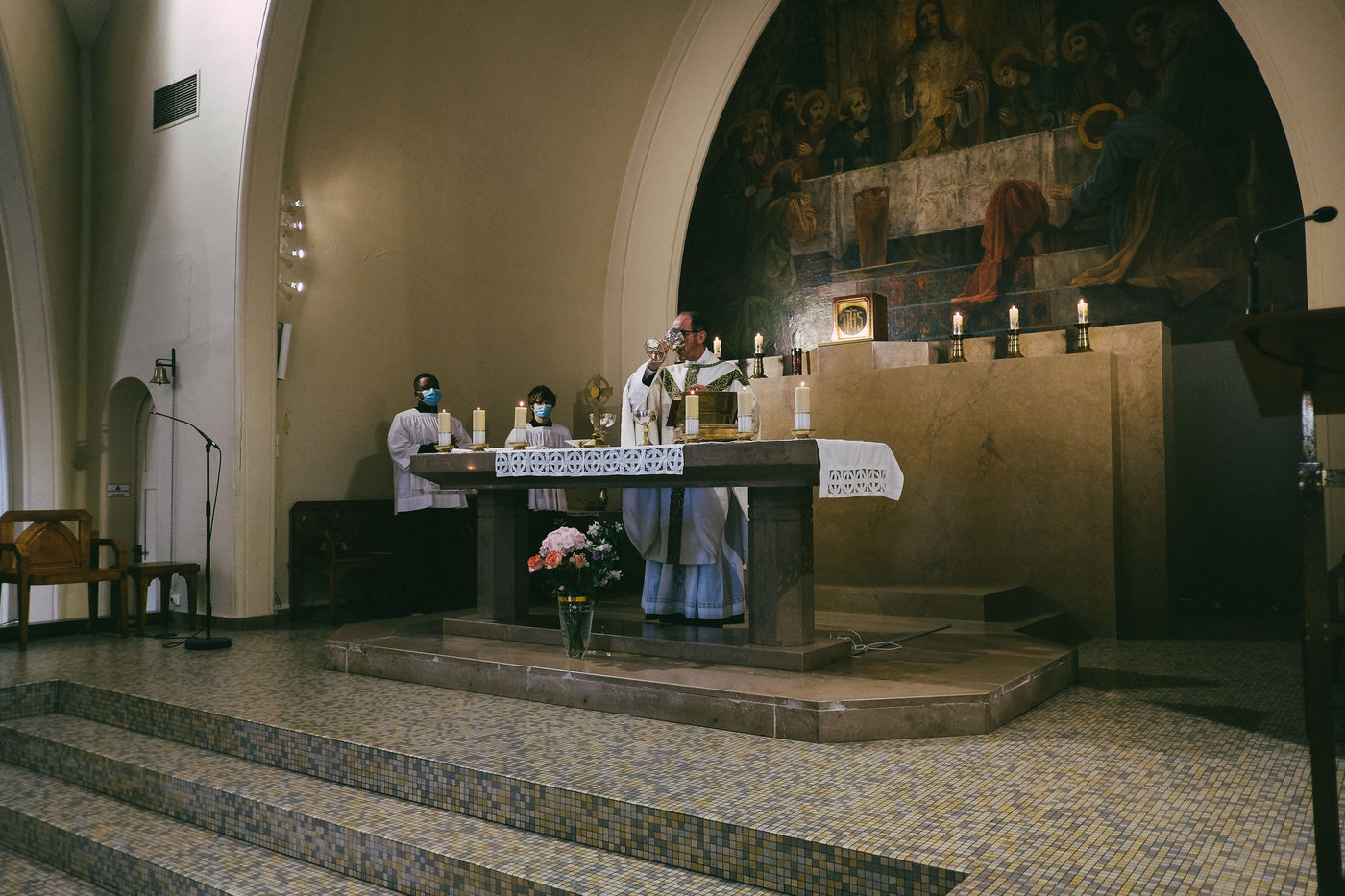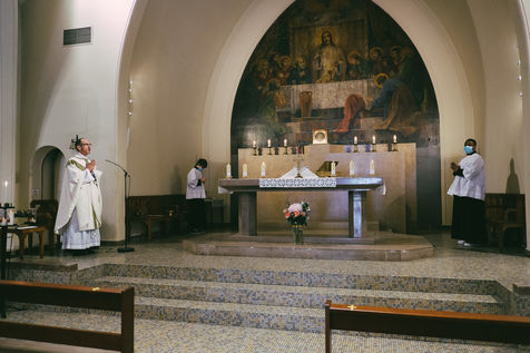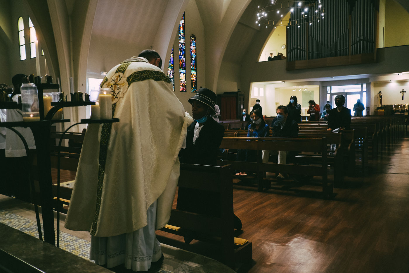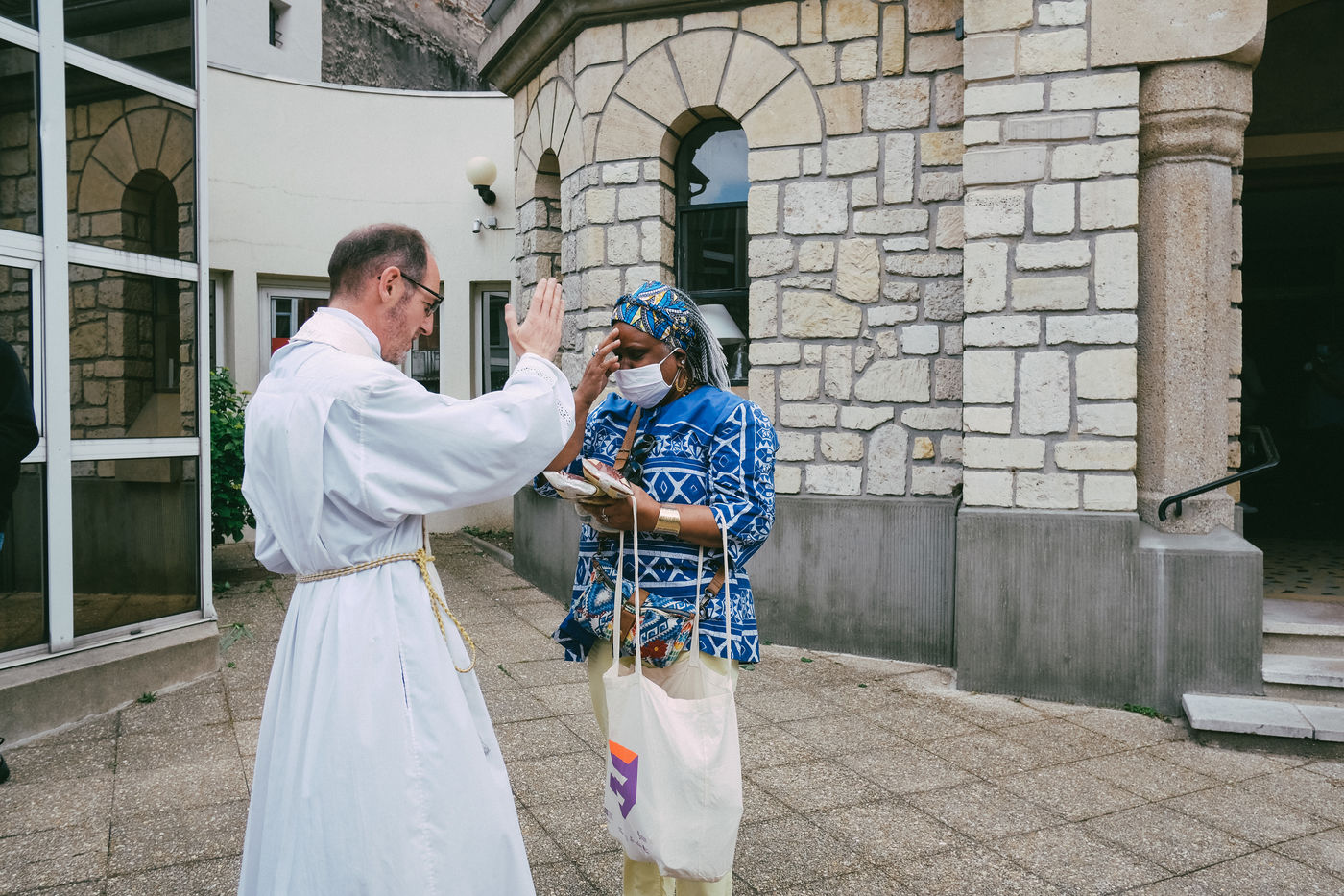 First mass after the deconfinement, resumption of religious celebrations by the Catholic faithful at parish « Coeur Eucharistique de Jésus ». Paris France, May 24, 2020.