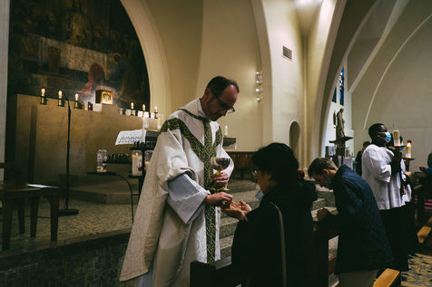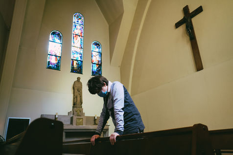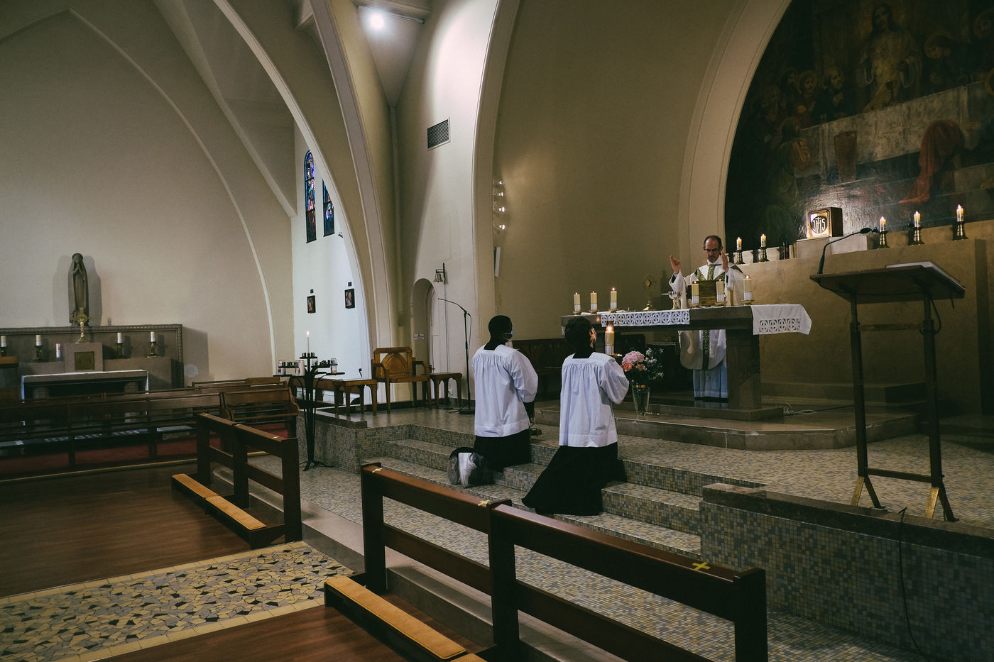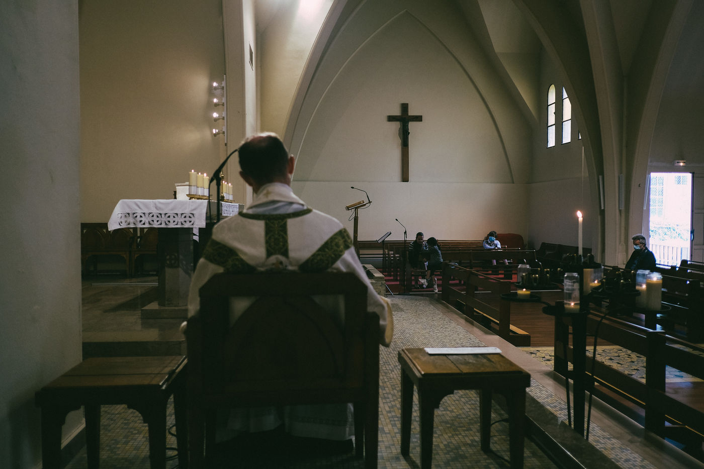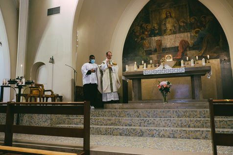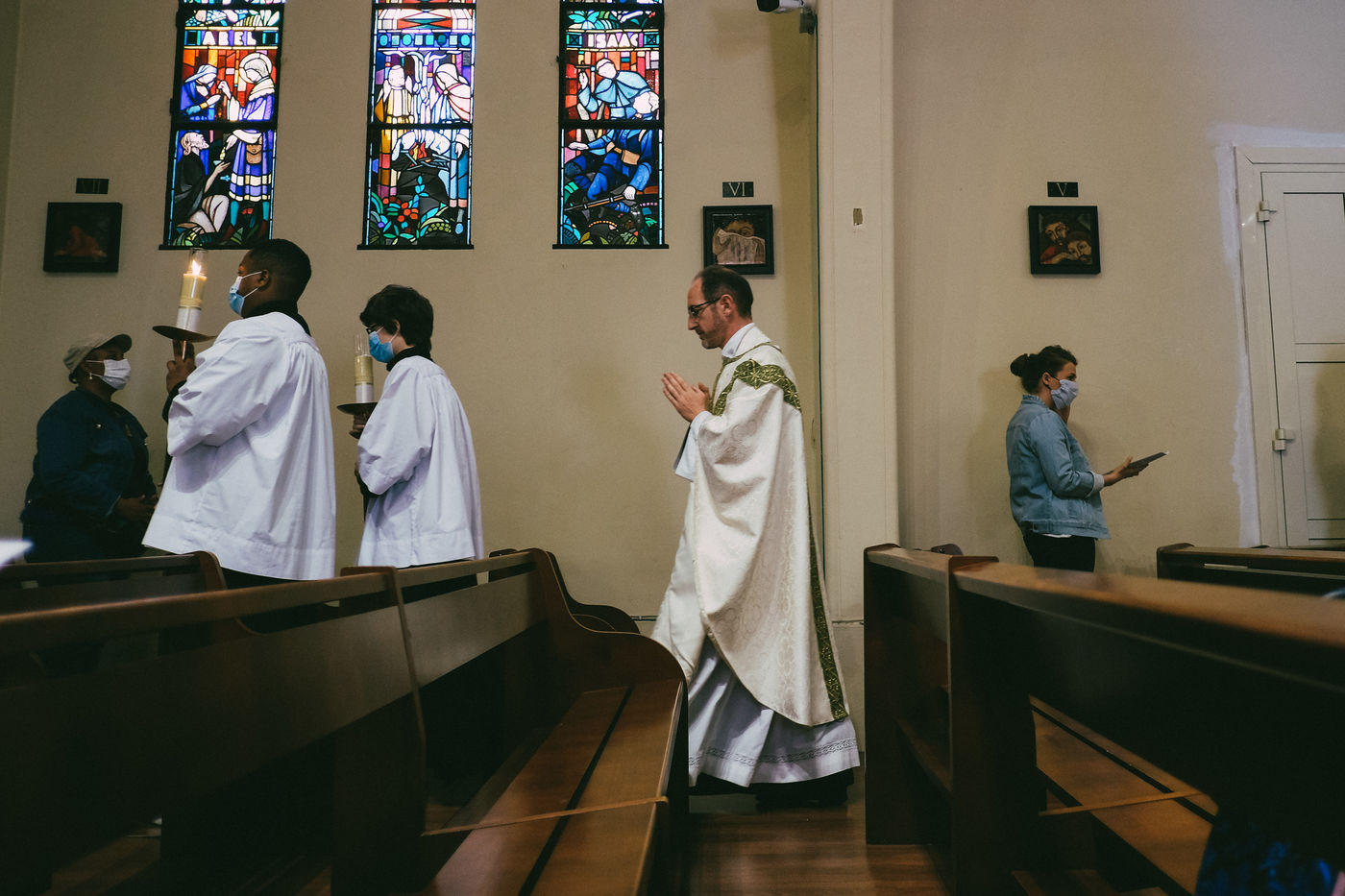 First mass after the deconfinement, resumption of religious celebrations by the Catholic faithful at parish « Coeur Eucharistique de Jésus ». Paris France, May 24, 2020.