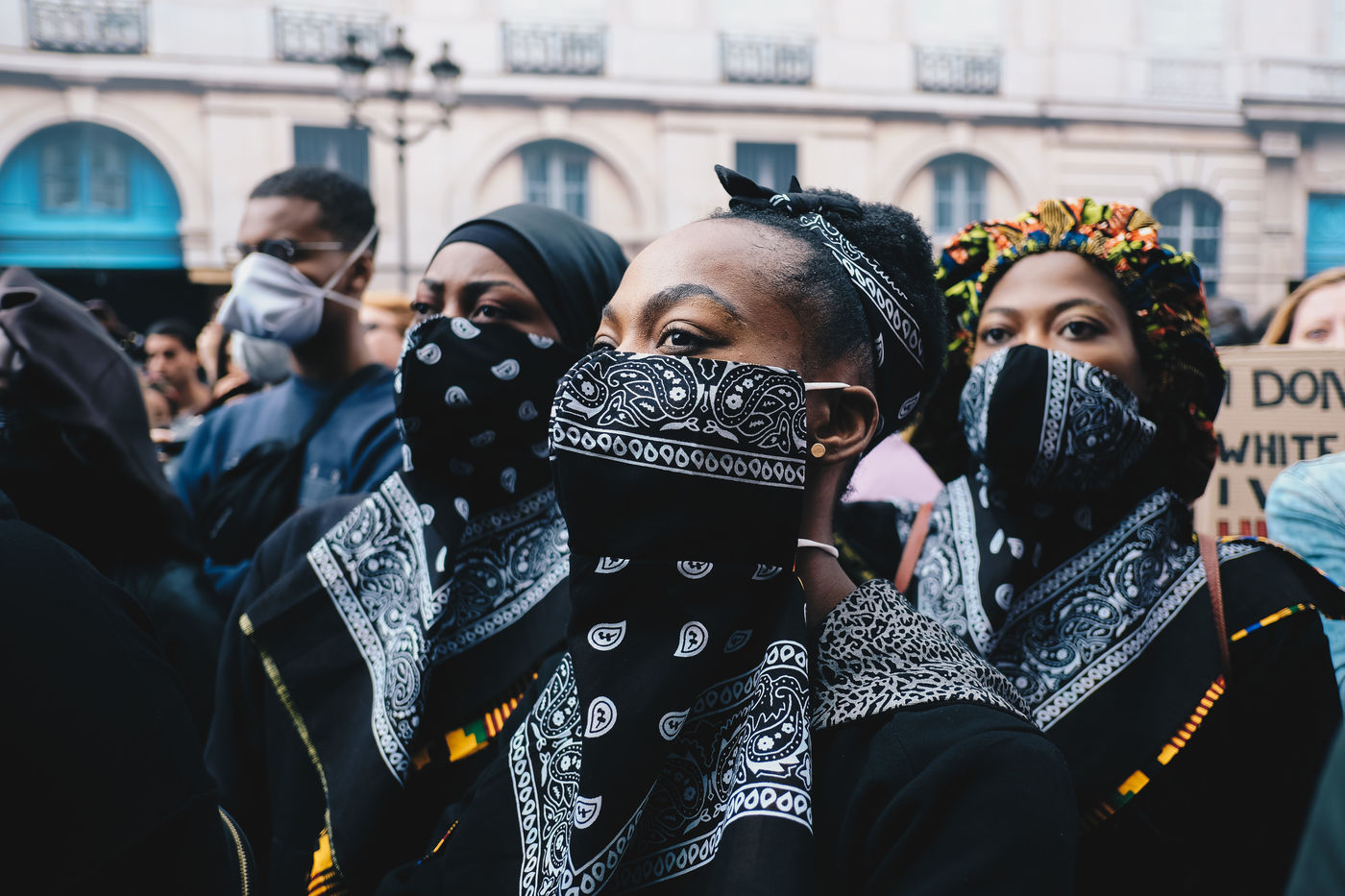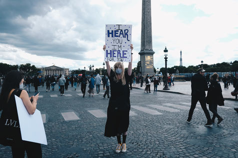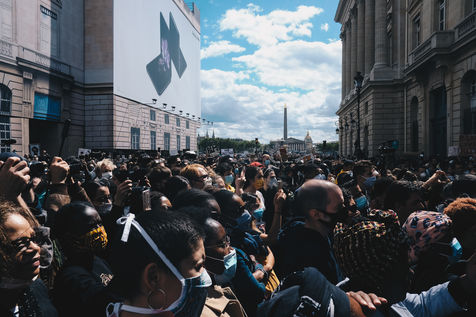 Gathering in tribute to George Floyd and the victims of police violence, in front of the American embassy. Paris, France, June 6, 2020-06-06.