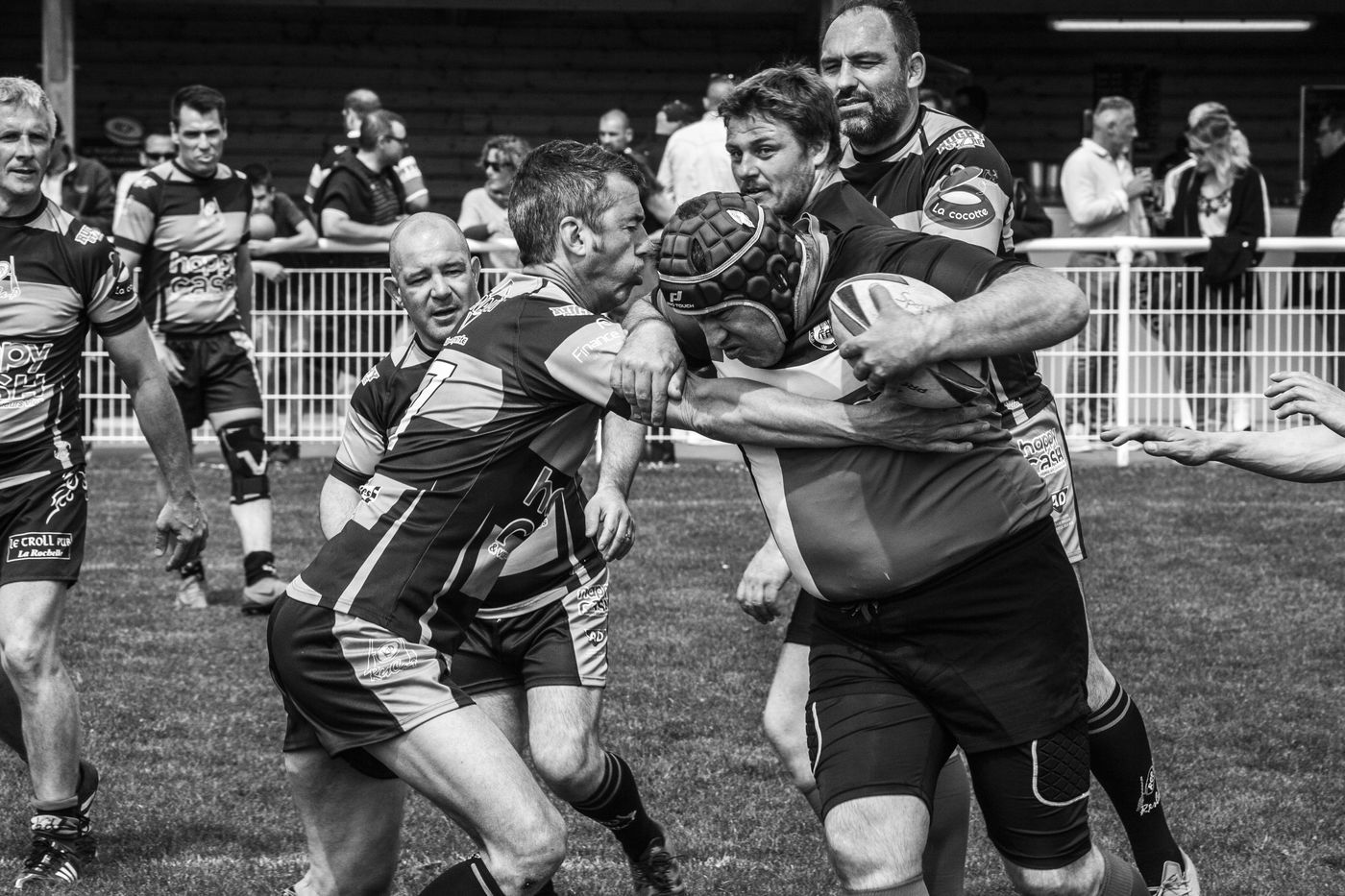 J?ai été appelé par le CDSA pour porter un regard sur la pratique sportive du rugby dans le club de la ville de Puilborau (2eme club du département) proche de La Rochelle, afin de mettre en lumière cette façon de s'affranchir des barrières sociétales face au handicap mental. Produire le récit d'une journée de rencontre sportive en vue des championnats de France de rugby de sport adapté qui se dérouleront du 10 au 12 Mai 2019 à la Crau . Pour cela il est à noter la grande complicité des participants de l'équipe de Puilboreau et del'équipe adverse, sénior du rugby Club de Puilboreau durant toute la rencontre de cette journée du 21 Avril. Il fallait que je puisse traiter au travers de cette journée, le caractère unique et remarquable que peut apporter le sport adapté à un groupe de 7 camarades en situation de handicap mental investis dans la réussite de leur activité sportive.
