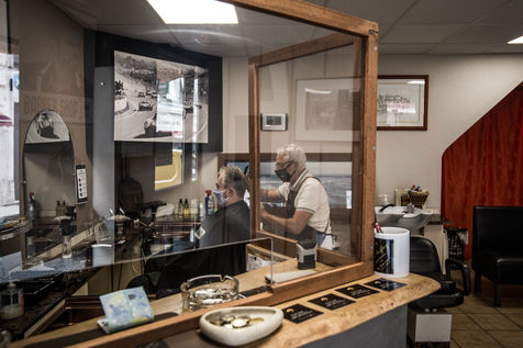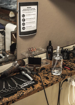 Bruno, coiffeur pour homme dans la petite ville de charente maritime en France à réouvert son salon le 11 Mai 2020. Son salon qui travers le temps s'adapte au précautions d'hygiènes en vigueur.