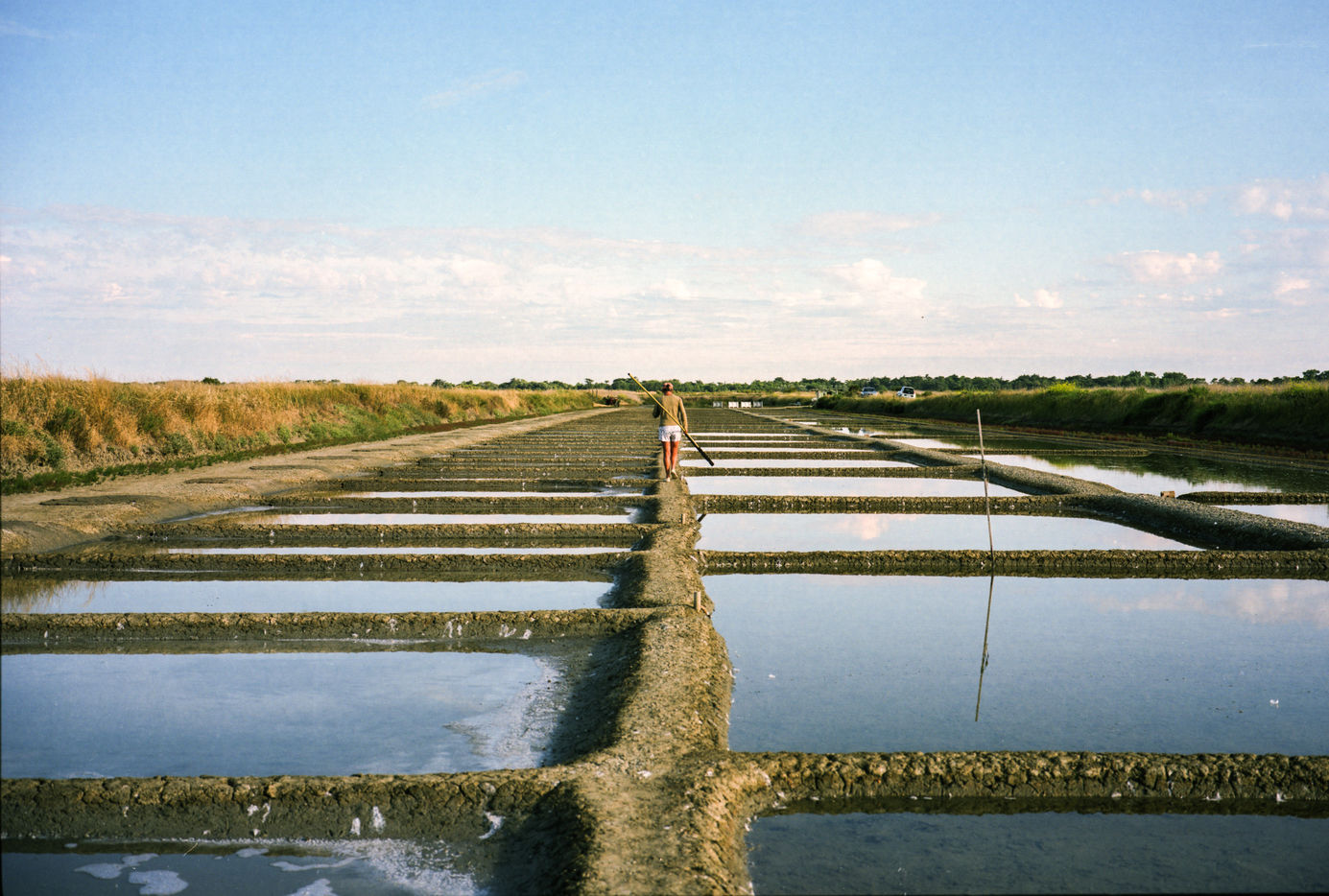 Au milieu des marais de Saint clément se trouve un cabane vert pastel isolée. Un tracteur rouge éclatant entre deux carreaux et Valérie seule au milieu de son marais. En funambule cuivré, le simoussi à la mains. Elle récolte le gros sel. C'est le début de la saison la chaleur attendue ne rendra de la fleur de sel que dans sept à dix jours. Mais l'été s'annonce orageux et donc peu productif. Les anciens l'ont dit ; et 2020 ne leurs donnera pas tord. C'est ainsi, que fonctionne la vie de saunier. Sur le fil de l'eau et du soleil. En alchimistes funambules, entremetteurs respectueux au rythme des saisons, à l'écoute de l'écosystème qui les entour.